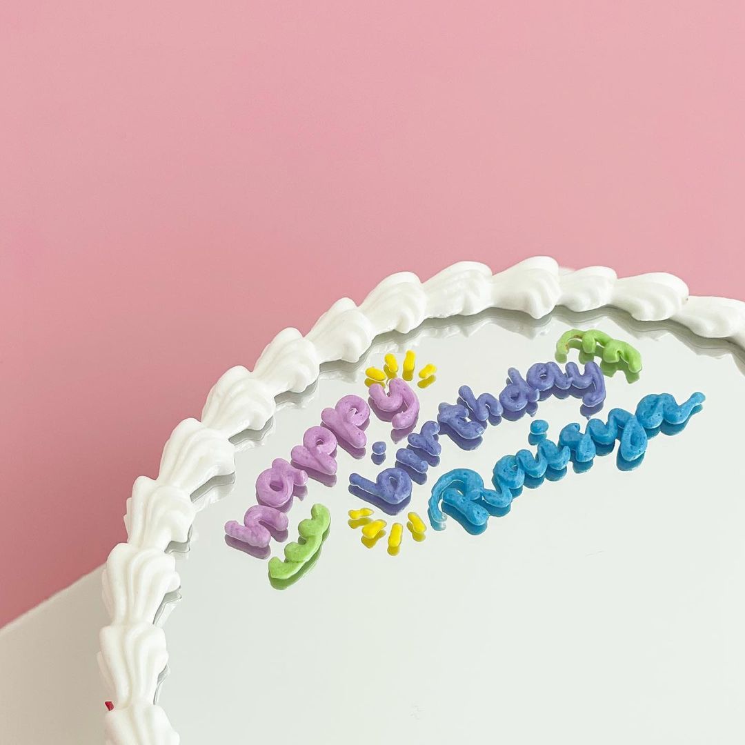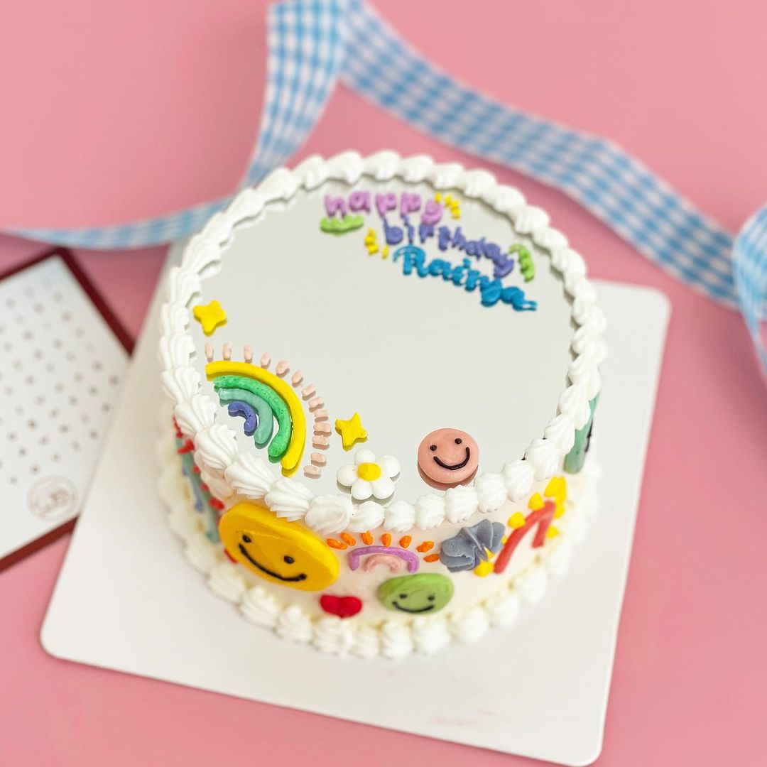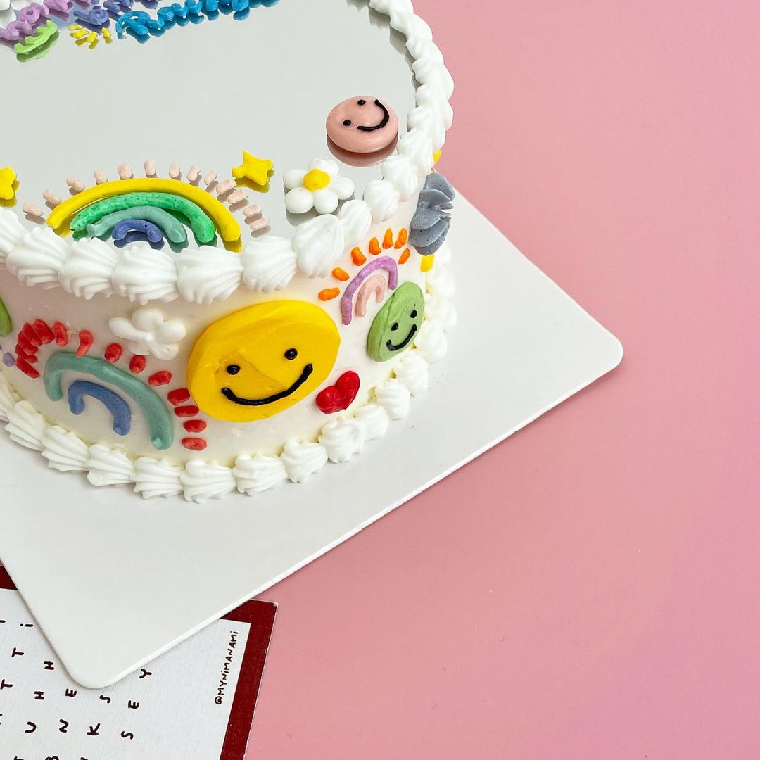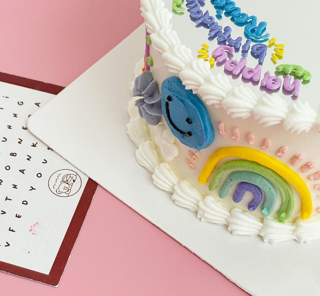 Tampoco tienes que limitarte solo a frases, la versión de Myni Manami me parece de lo más original y repite los elementos de la decoración de los bordes del pastel, así está completamente decorado.