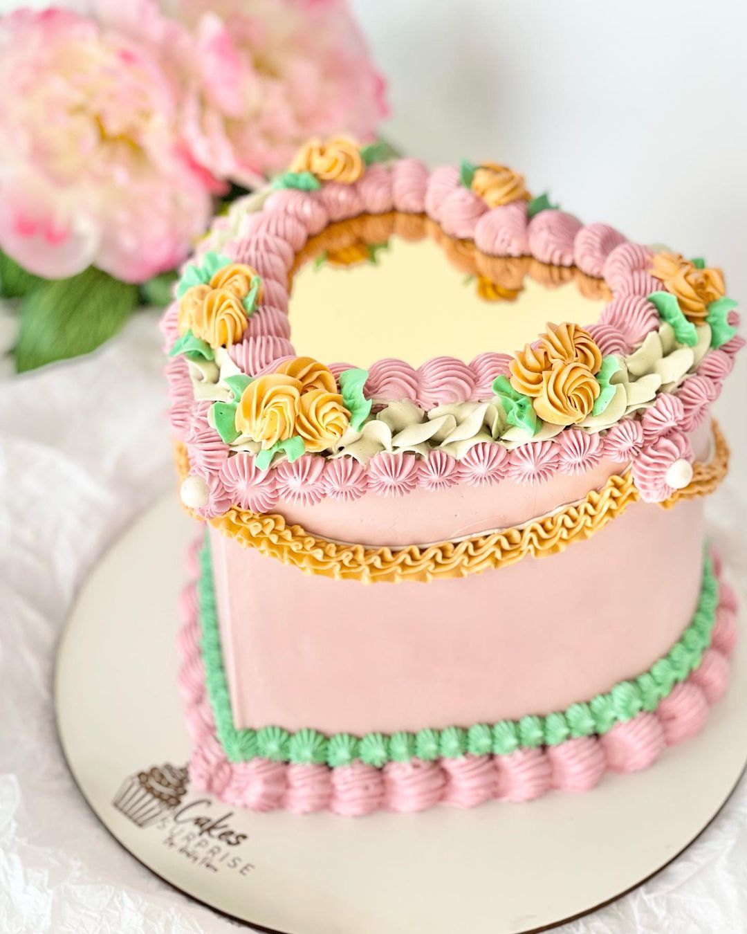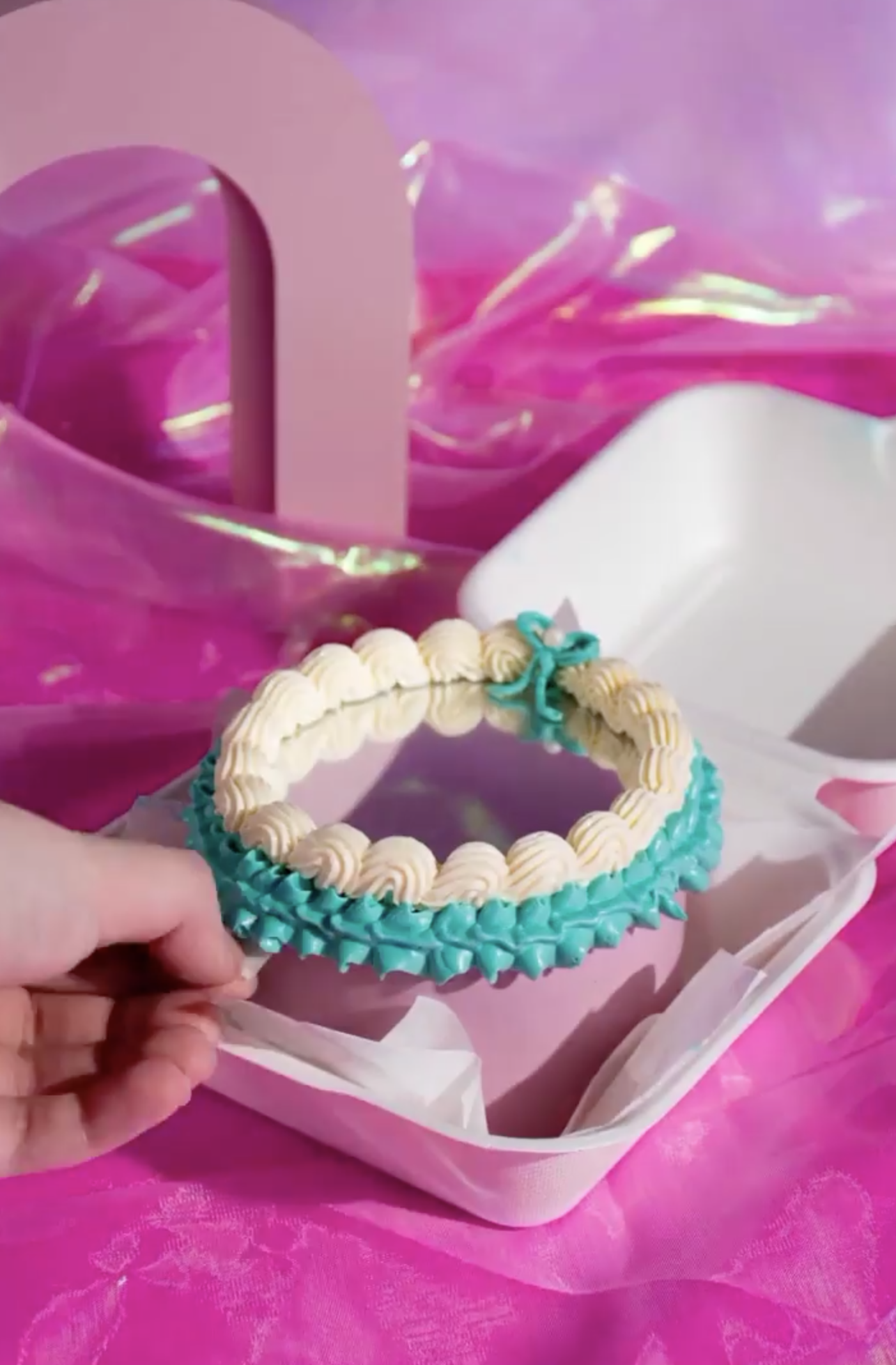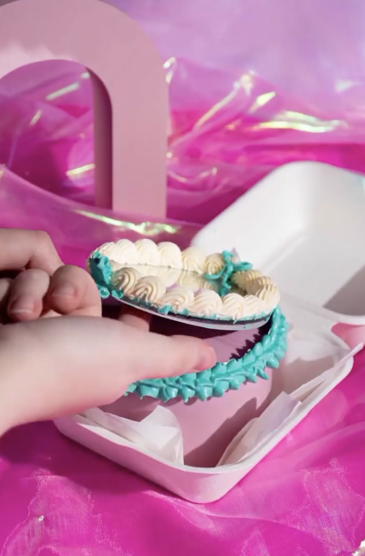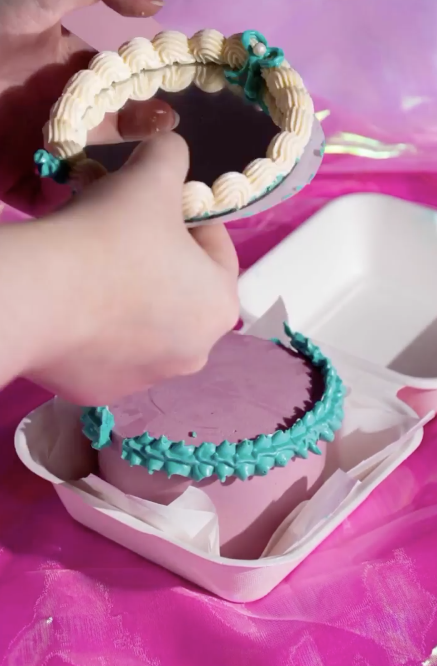 Lo primero que podemos hacer es tomar precauciones, separar un poco el espejo del pastel y minimizaremos el problema, sea con los puntos de buttercream de los que te hablé antes u optando por una base de cartón para proteger el espejo.